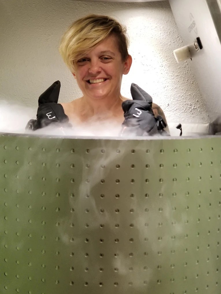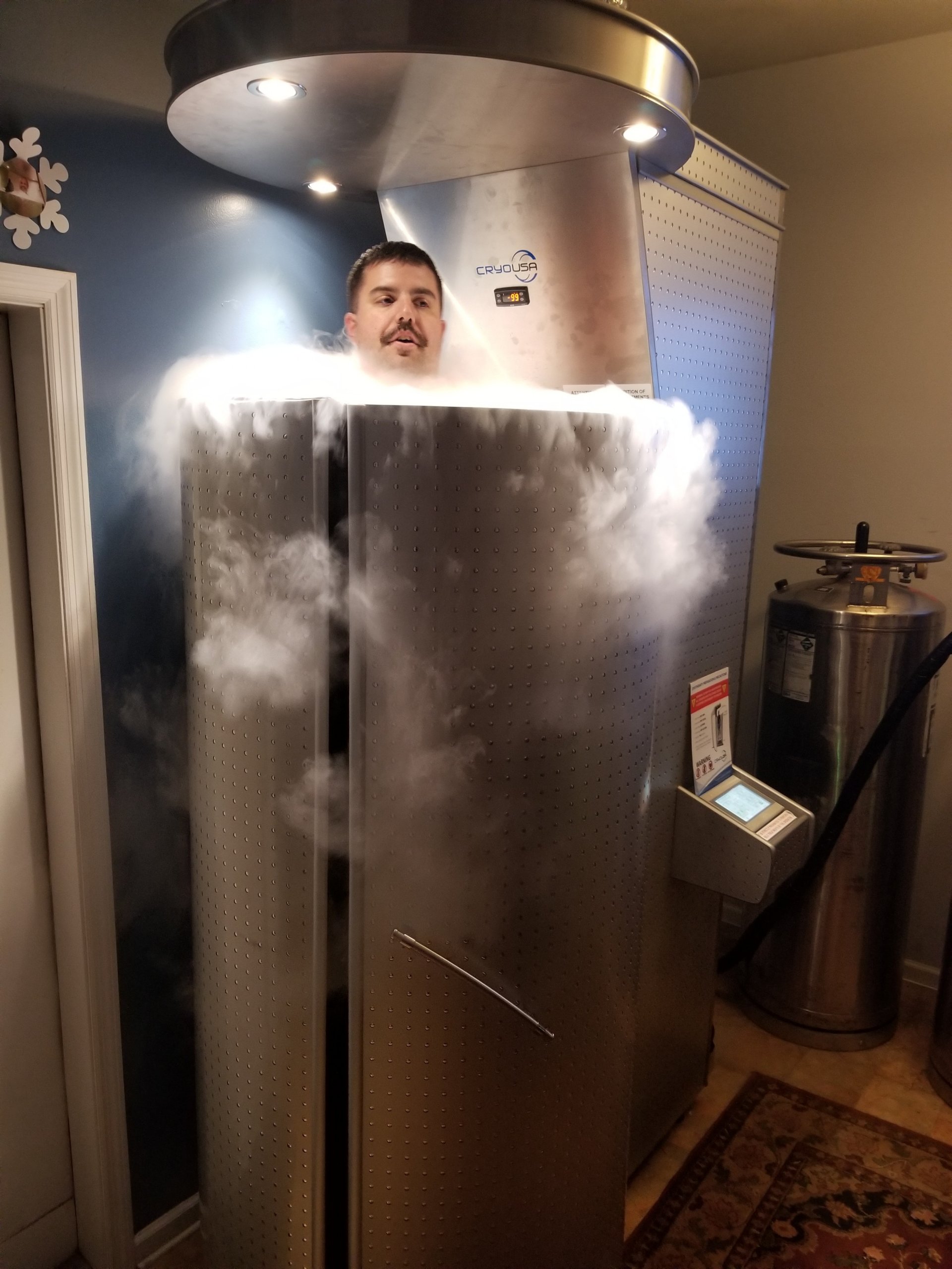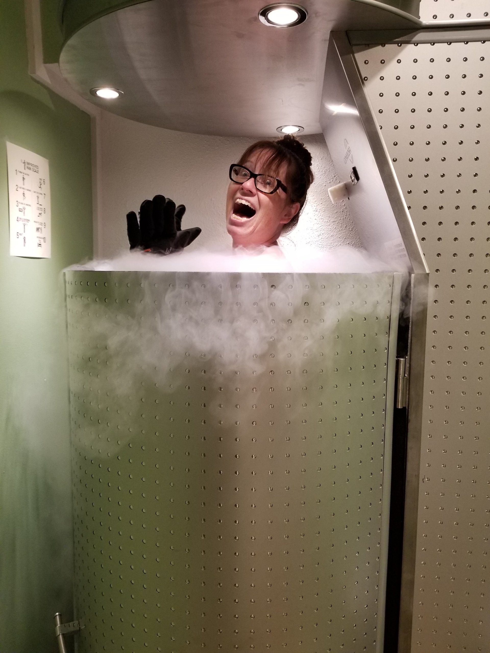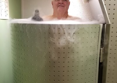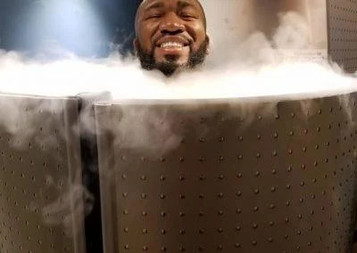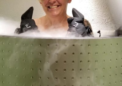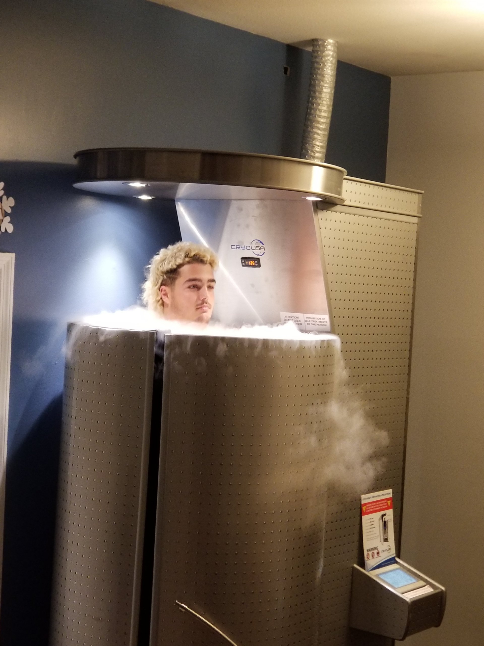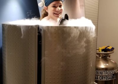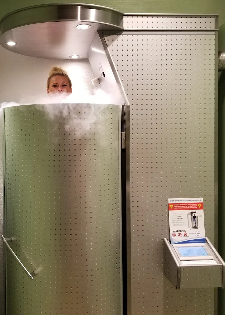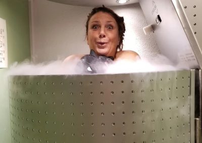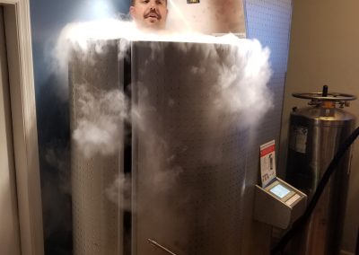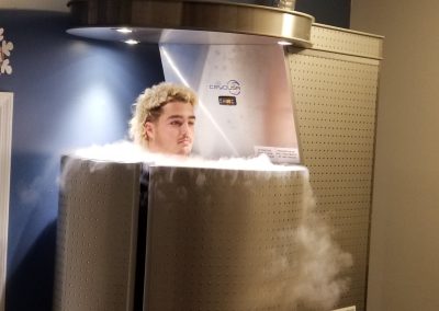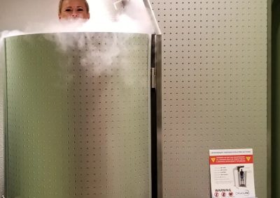 After entering the Cryochamber at approximate -130 to -140 degrees Celsius you will be monitored by your technician for your entire treatment time in the chamber. A client’s time can range from 1 minute 30 seconds up to the full 3 minute treatment time. After you exit the chamber you be guided to change into your clothes, have a seat, drink some fluids, and warm your body up before leaving into the world.