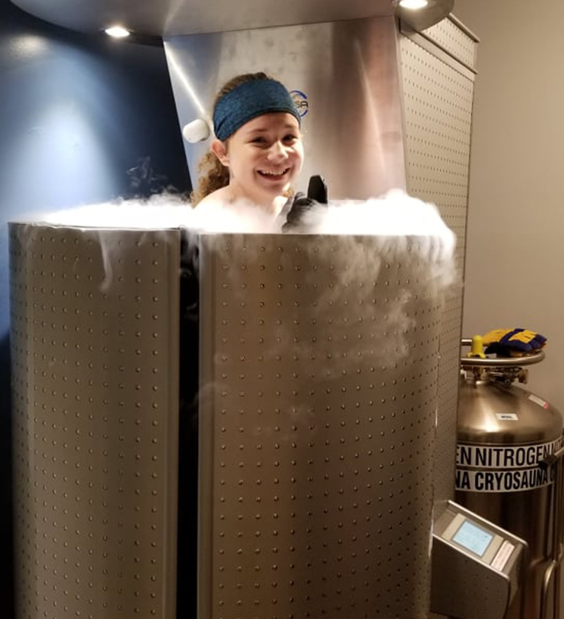 The Whole-body Cryosauna uses a gaseous form of nitrogen to lower the skin’s surface temperature by 30-50 degrees during a two to three minute session. The exposed skin’s reaction to the extreme temperatures is sending messages to the brain that stimulate natural regulatory functions of the body. Consequently, the skin’s exposure to these subzero temperatures triggers the release of endorphins, anti-inflammatory molecules, increases oxygen circulation within the bloodstream, and releases toxins from tissues.